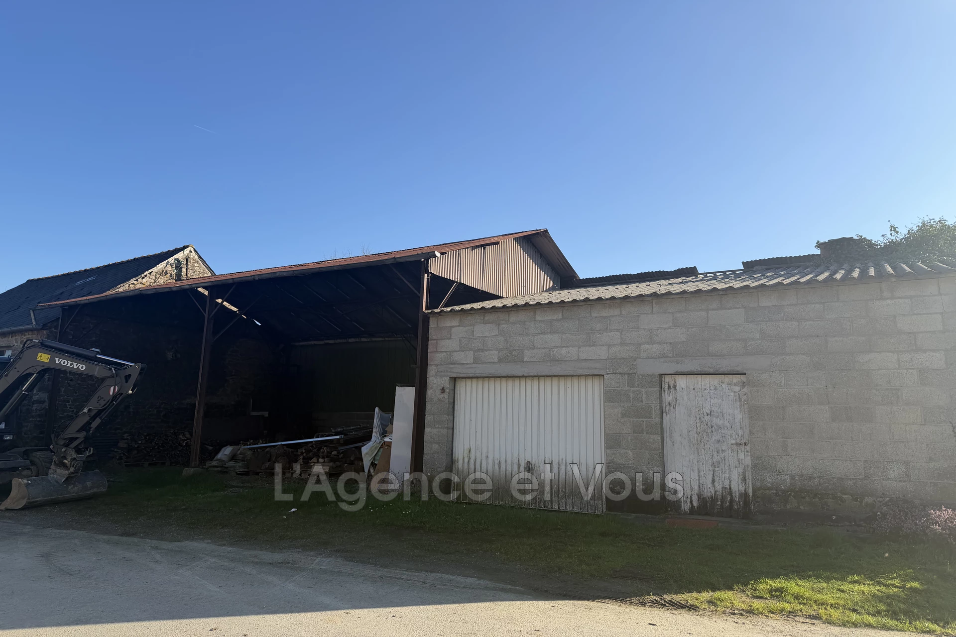 En face de la maison, vous bénéficierez d'un garage, d'une dépéndance et d'un hangar, parfaits pour le stockag, un atelier ou un futur projet.