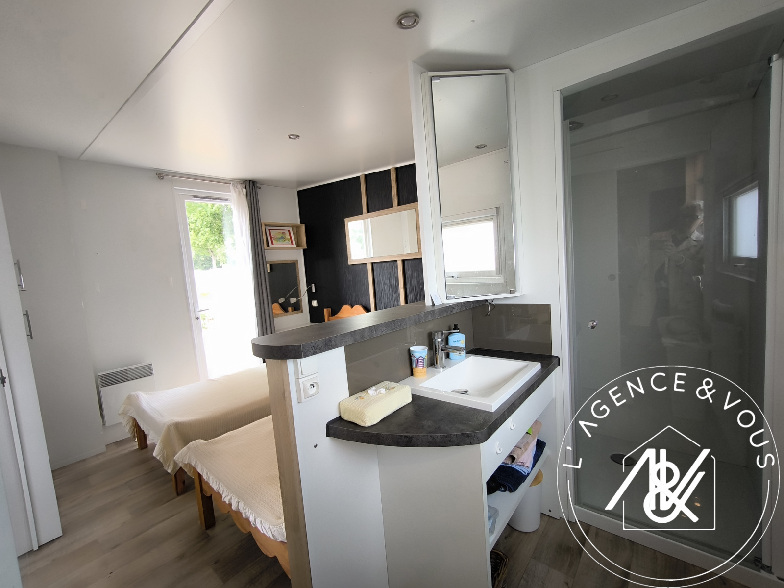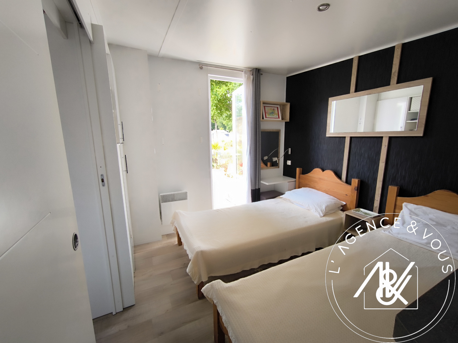 SOUS COMPROMIS ! - EN EXCLUSIVITE - L'Agence & Vous, Mélanie BLANVILLAIN 06 83 09 89 98, vous présente à la vente ce mobil home Louisiane modèle TAOS R4, année 2015, parfaitement entretenu, de 37,50 m2 env, meublé, avec sa parcelle de terrain de 152 m2, situé au calme, dans le domaine privé du Bois d'Amour.