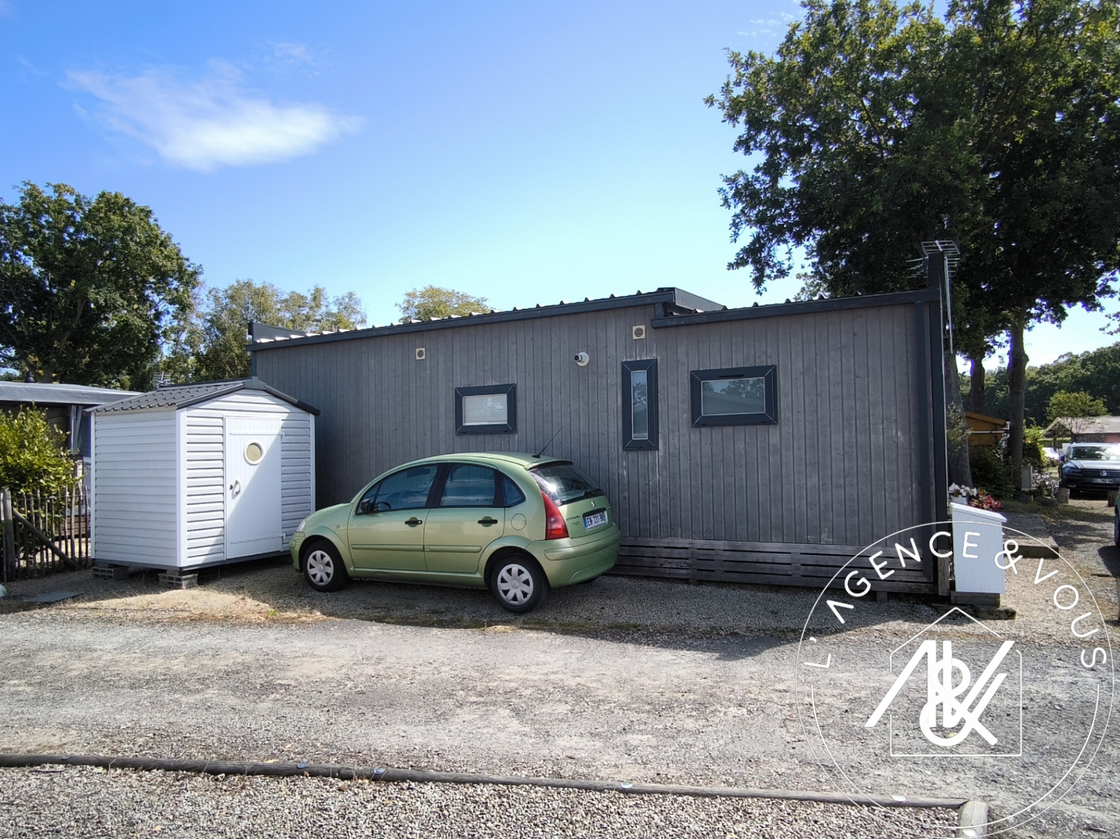 Le terrain est doté d'un abri de jardin et d'une place de stationnement.