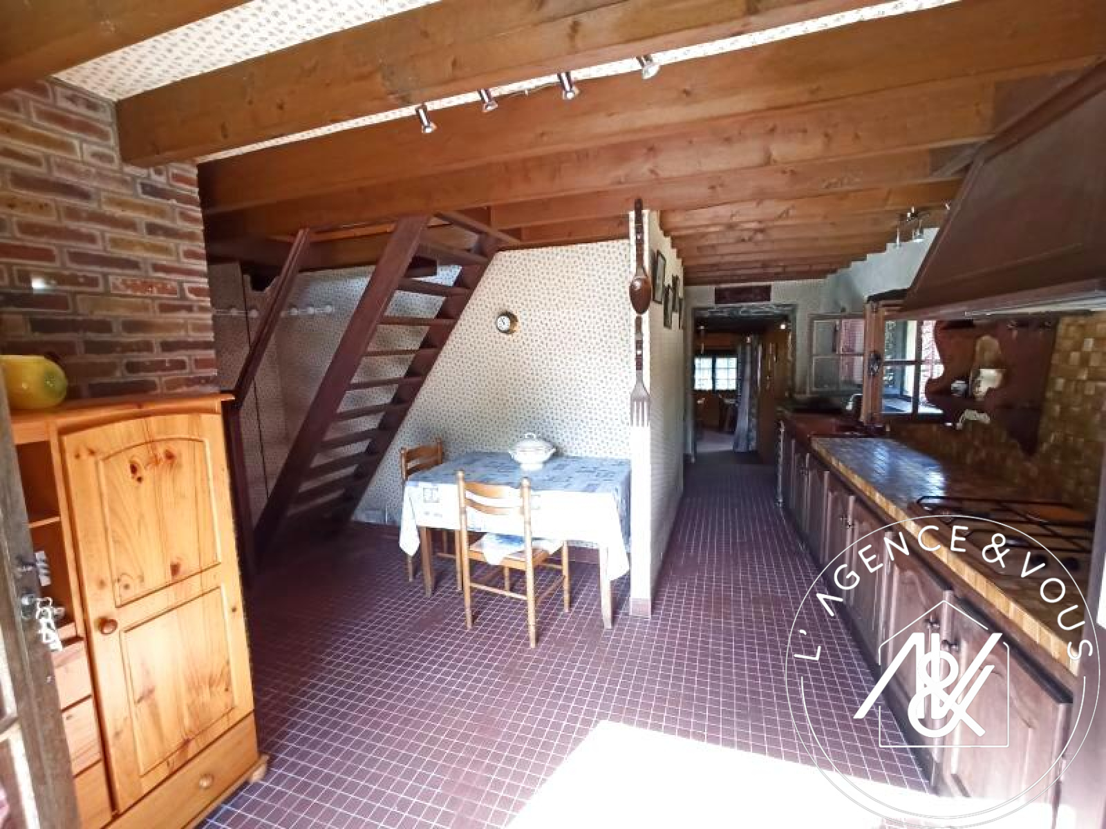 Carrez, accès depuis la cuisine par un escalier échelle de meunier, sous rampants, avec 2 fenêtres dont une vue terrain.