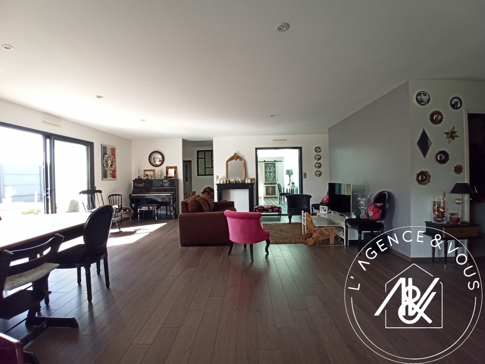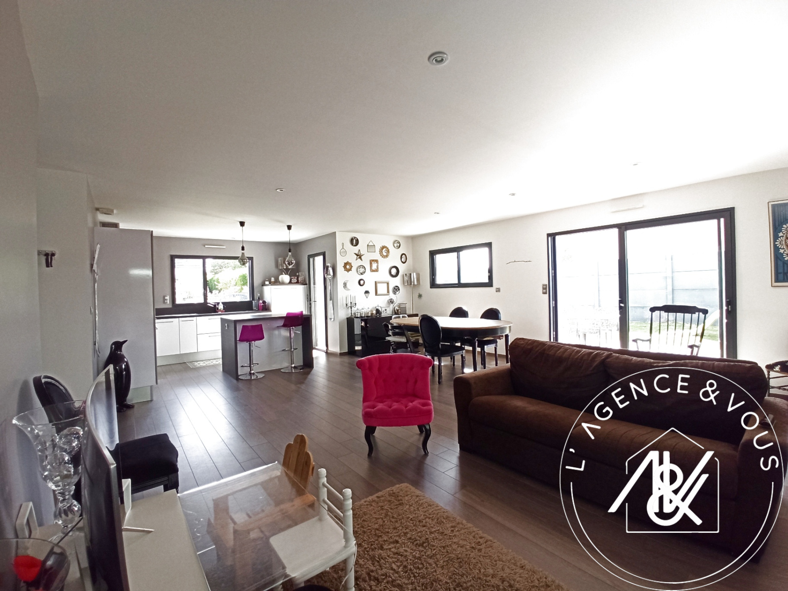 Elle vous offre une belle pièce de vie, lumineuse, avec sa cuisine ouverte entièrement aménagée et équipée, s'ouvrant par une large baie sur une terrasse en composite de 37 m2 environ exposée Sud-Ouest, un cellier avec accès sur le double garage (35 m2 environ). Egalement une suite parentale (avec dressing et salle d'eau), quatre chambres, une salle de bains, deux toilettes, et une mezzanine pouvant faire office de salle de jeux ou de bureau.