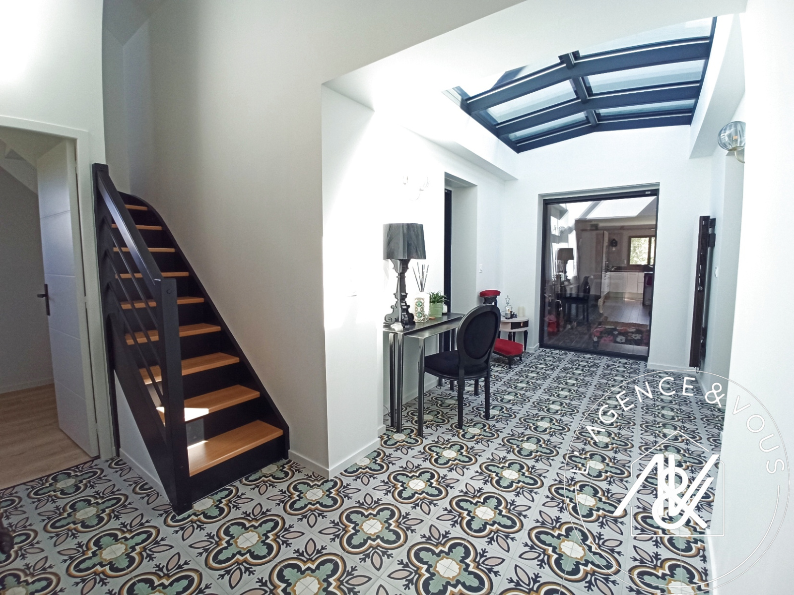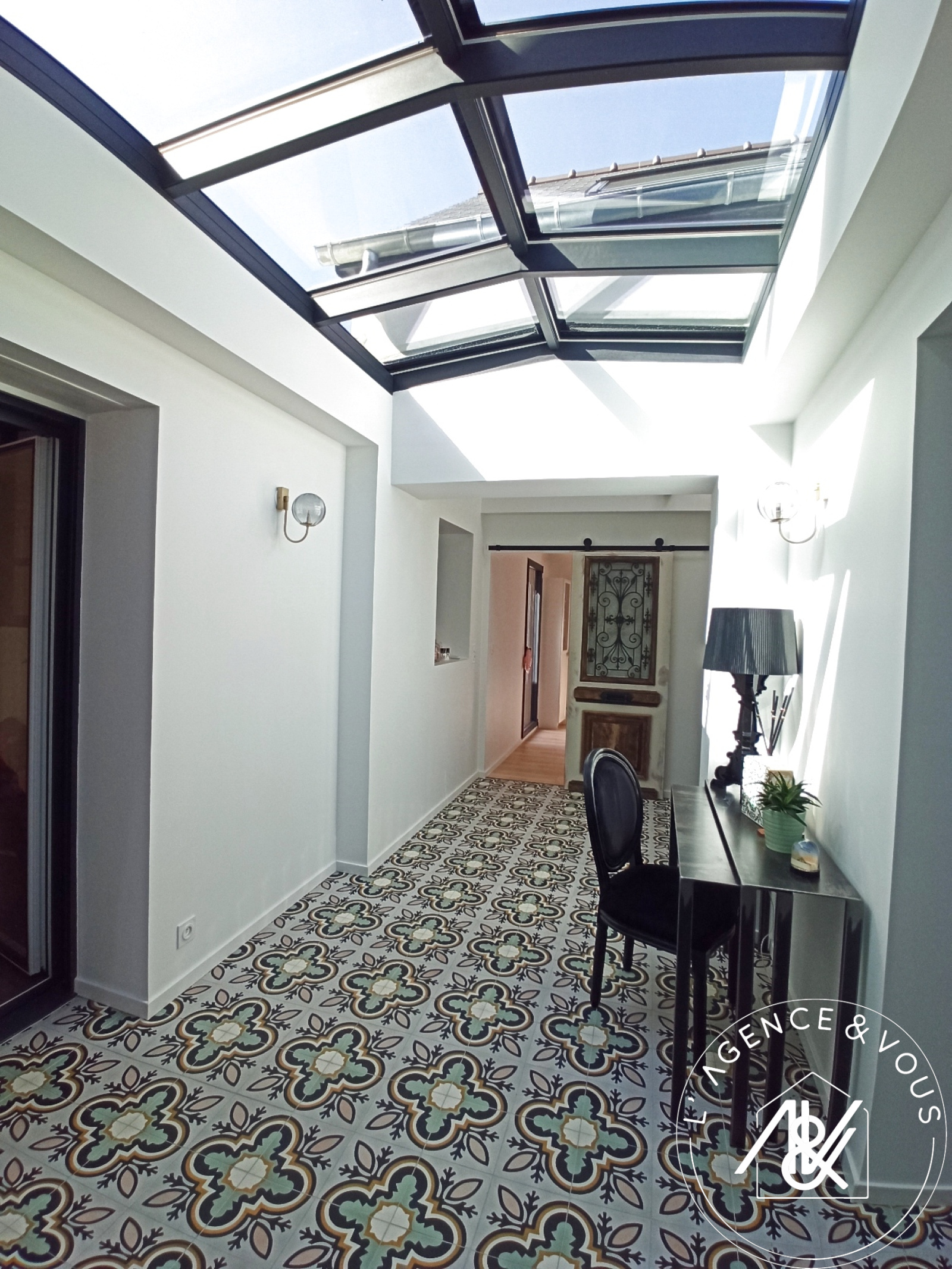 Vous serez charmés par la pièce maîtresse de la maison, située au centre : un patio, chauffé, couvert d'une verrière, à la déco tendance, carreaux de ciment véritable au sol.