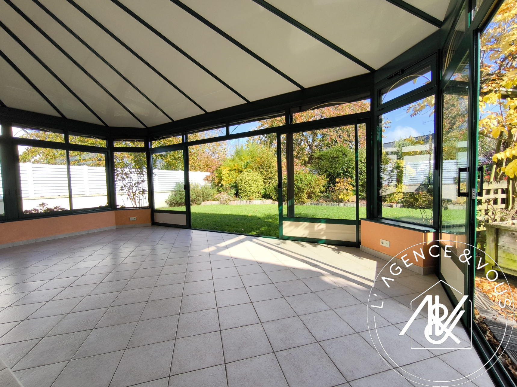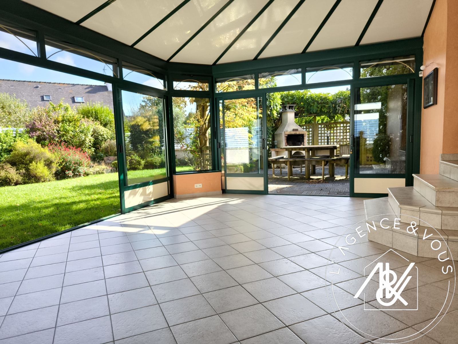 Elle vous offre, une entrée, un salon /séjour avec une cuisine ouverte entièrement aménagée et équipée, fonctionnelle, donnant sur une spacieuse véranda chauffée (35 m2) , idéale pour des repas de famille, s'ouvrant entièrement par de grandes baies sur le jardin et la terrasse. Egalement, deux chambres, une salle d'eau avec douche à l'italienne, et un toilette.