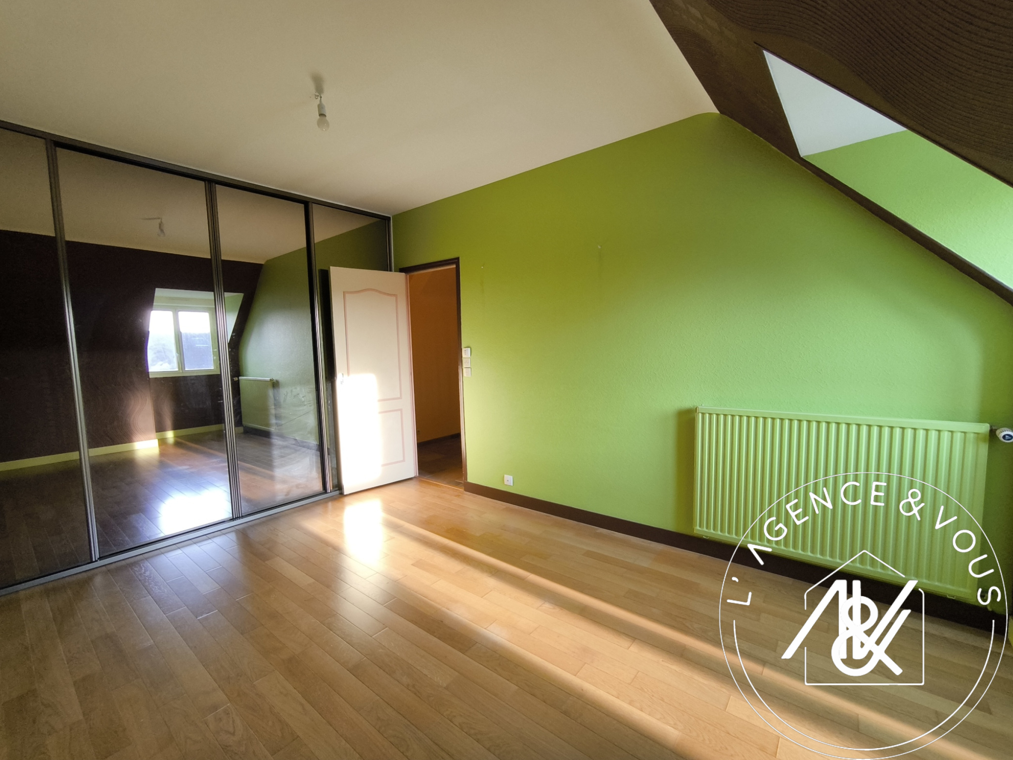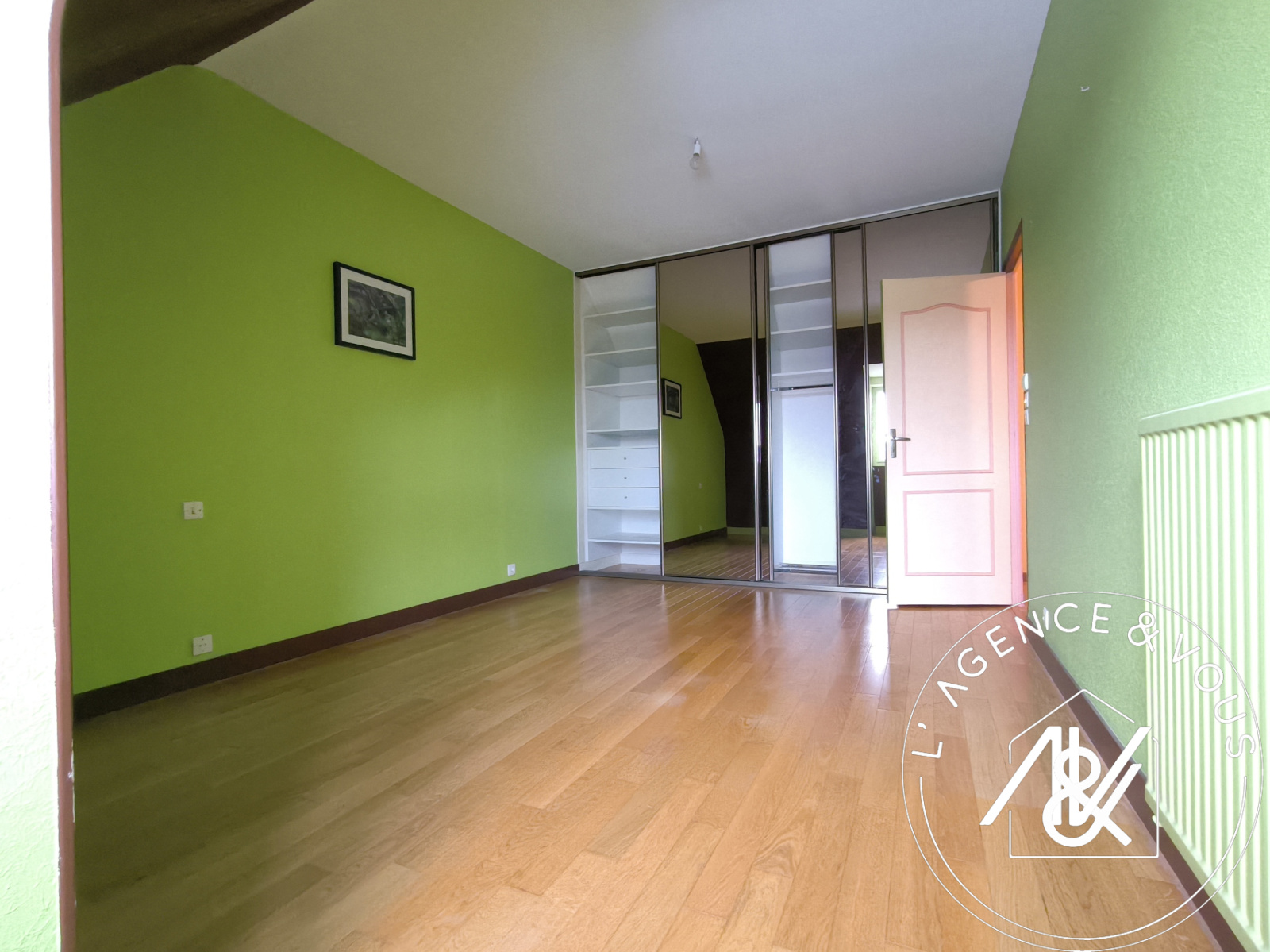 Parquet stratifié avec dressing, porte miroir.