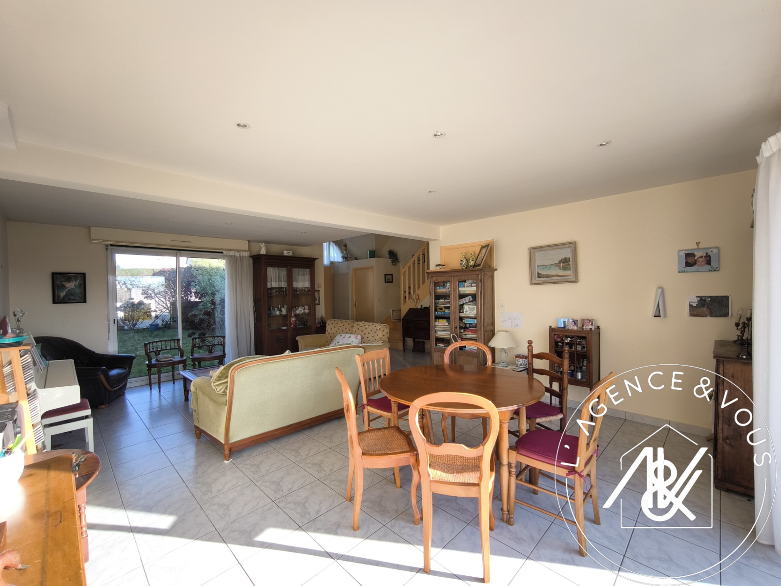 Au rez-de-chaussée, une entrée avec une belle hauteur sous plafond dessert un salon/séjour à la lumière traversante, s'ouvrant par une grande baie vitrée sur la terrasse et son jardin exposé plein Sud. Une cuisine indépendante, un toilette, et une pièce ( ancien garage réhabilité ) pouvant faire office de chambre ou bureau selon vos besoins.
