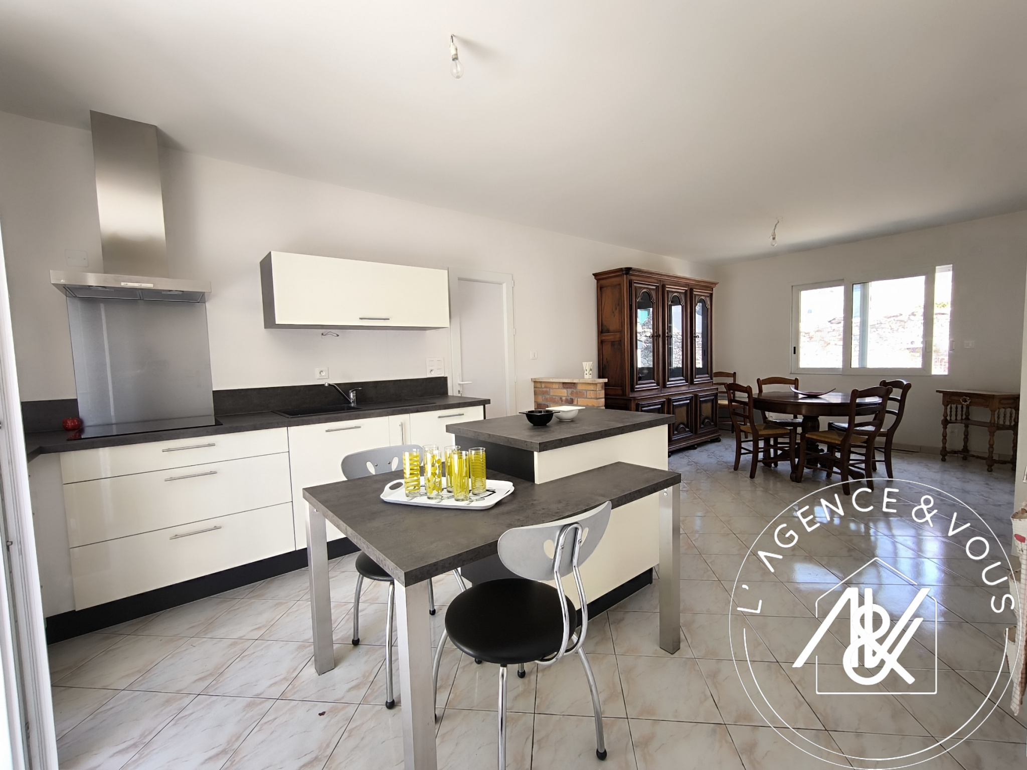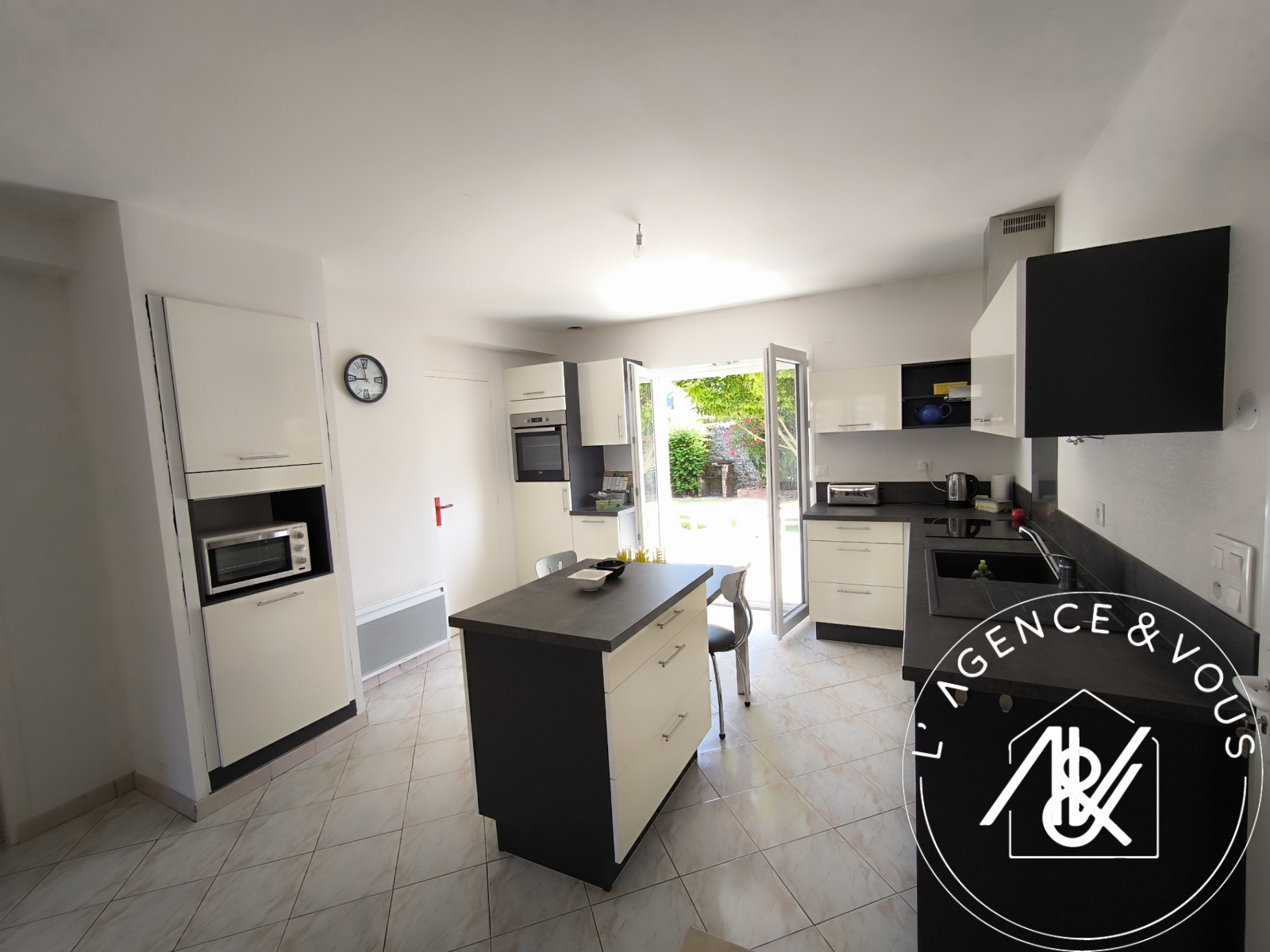 cuisine de 2017, avec accès au garage et s'ouvrant sur la terrasse.