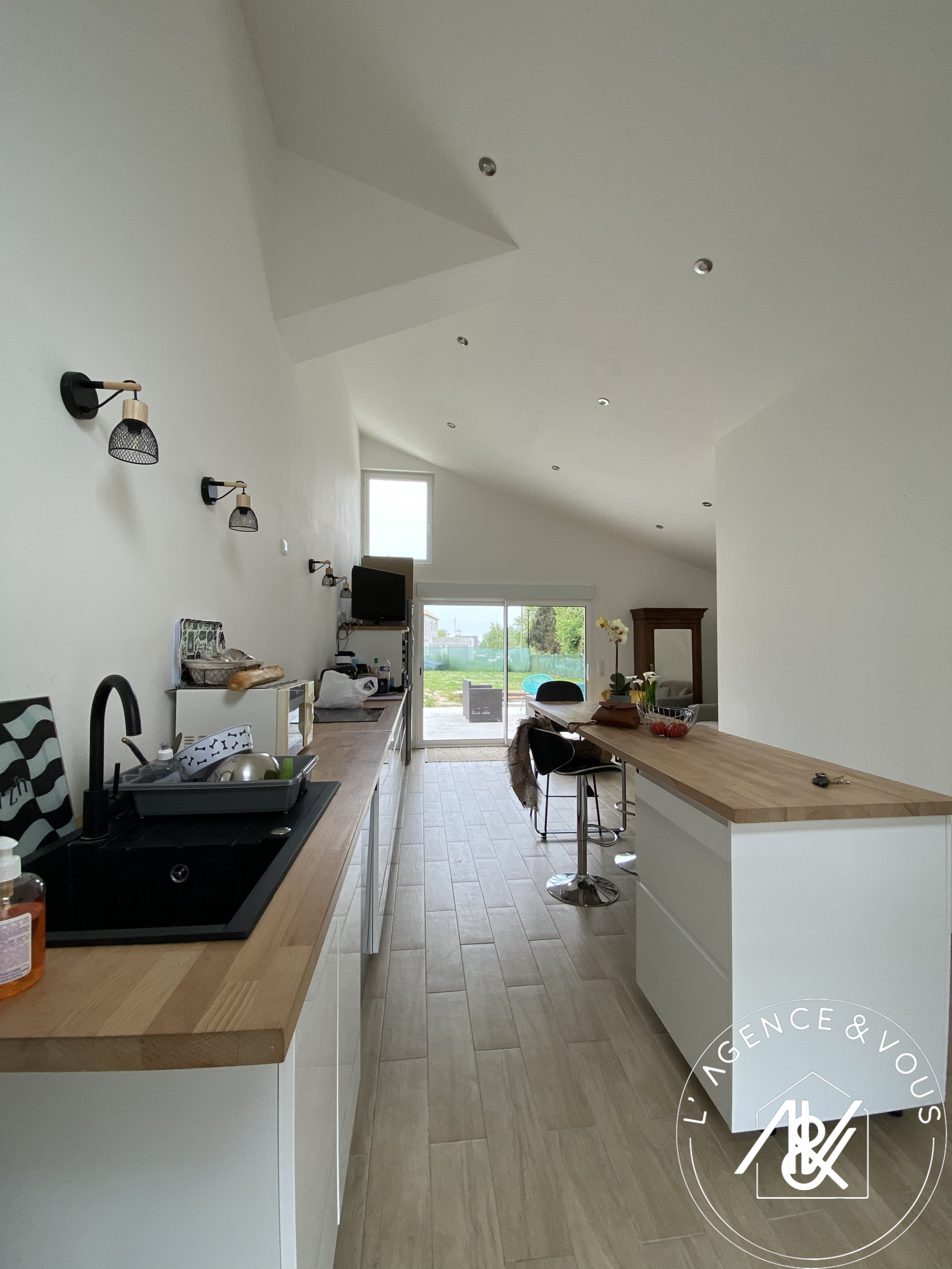 Elle vous offre en rez de chaussée une pièce à vivre de 50 m2 avec son poêle à granule. Dans une extension récente, vous trouverez une grande cuisine, aménagée et équipée, une buanderie et un WC.