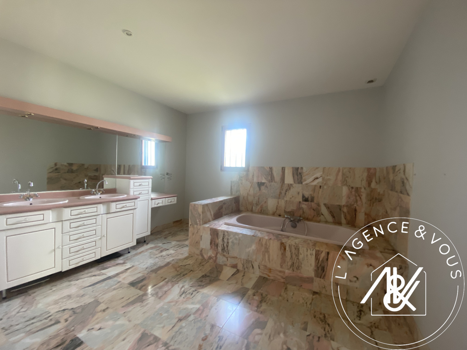Sol stratifié, baie au Sud sur piscine et terrasse.